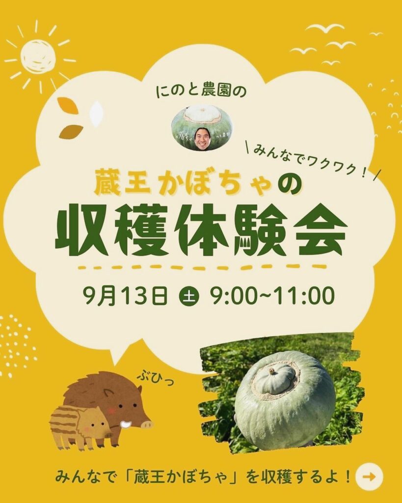 実りの秋を肌で感じられるイベントだと思うので、ご家族やお友達とお誘い合わせのうえ、ぜひご参加ください☺️