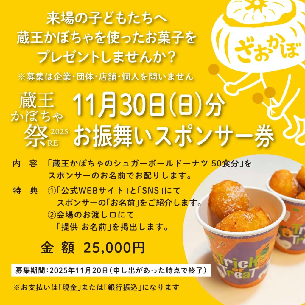 そこで!子どもたちに蔵王かぼちゃのシュガーボールドーナツをお振る舞いしてくださるスポンサー様を募集させてください。